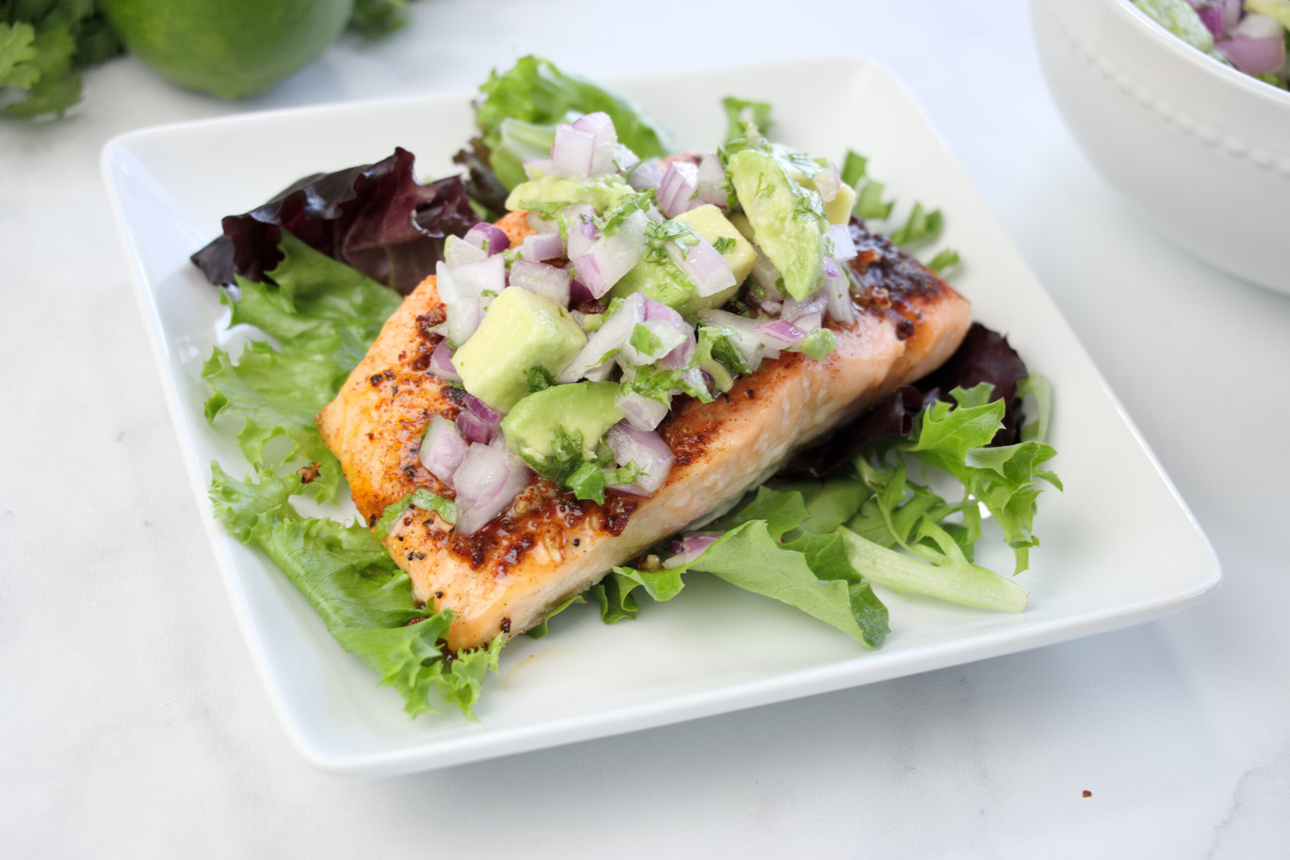 Pan-seared salmon with a bright avocado lime topping makes a flavorful dinner. Get the recipe here.